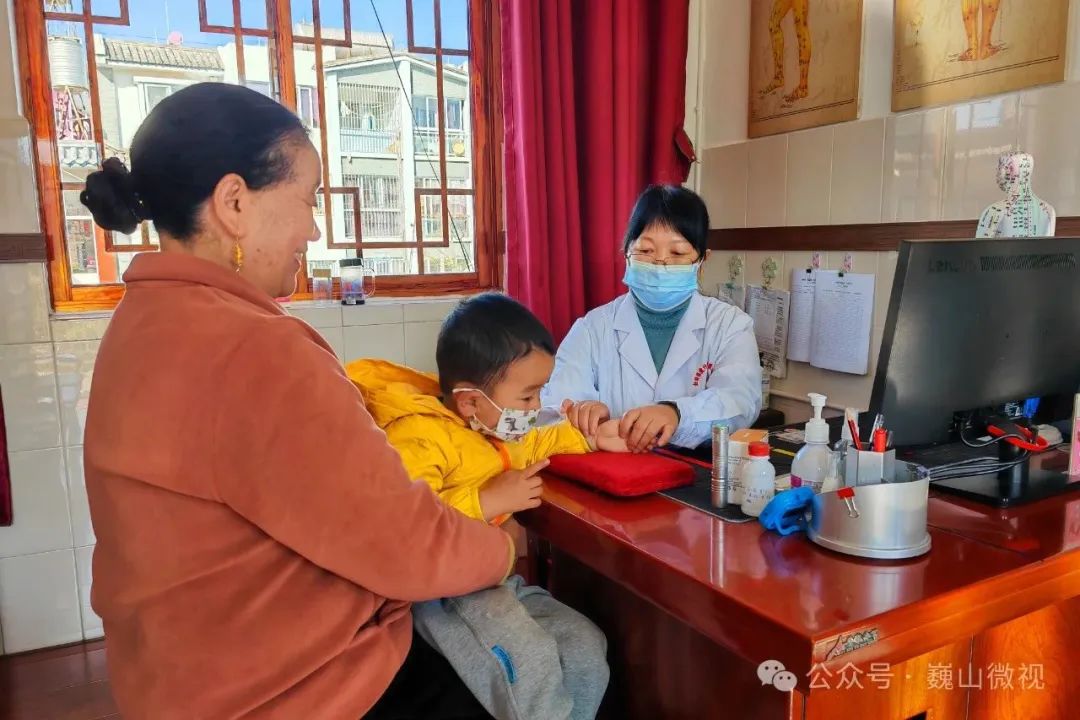 “我们家这个娃娃发烧了三天了,打针吃药都没好,昨天来做了小儿推拿,烧就退了,今天还有点咳嗽,接着来做一下,效果挺好的”带着孙子来治疗的南诏镇居民阿秀英说。