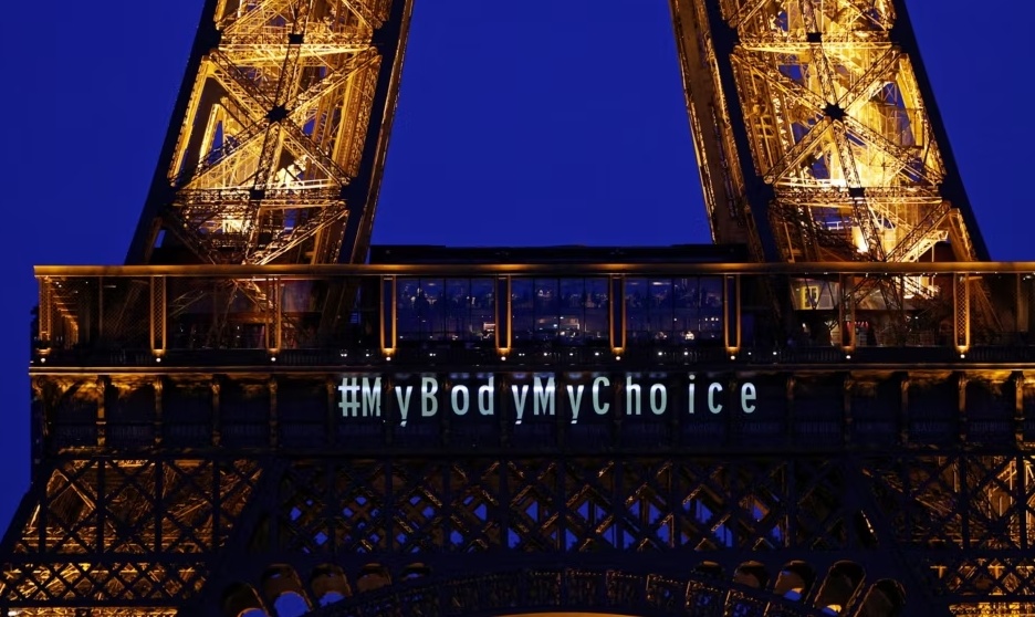 法国通过将堕胎权纳入宪法的宪法修正案,巴黎埃菲尔铁塔亮起“我的身体我的选择”。(路透社)