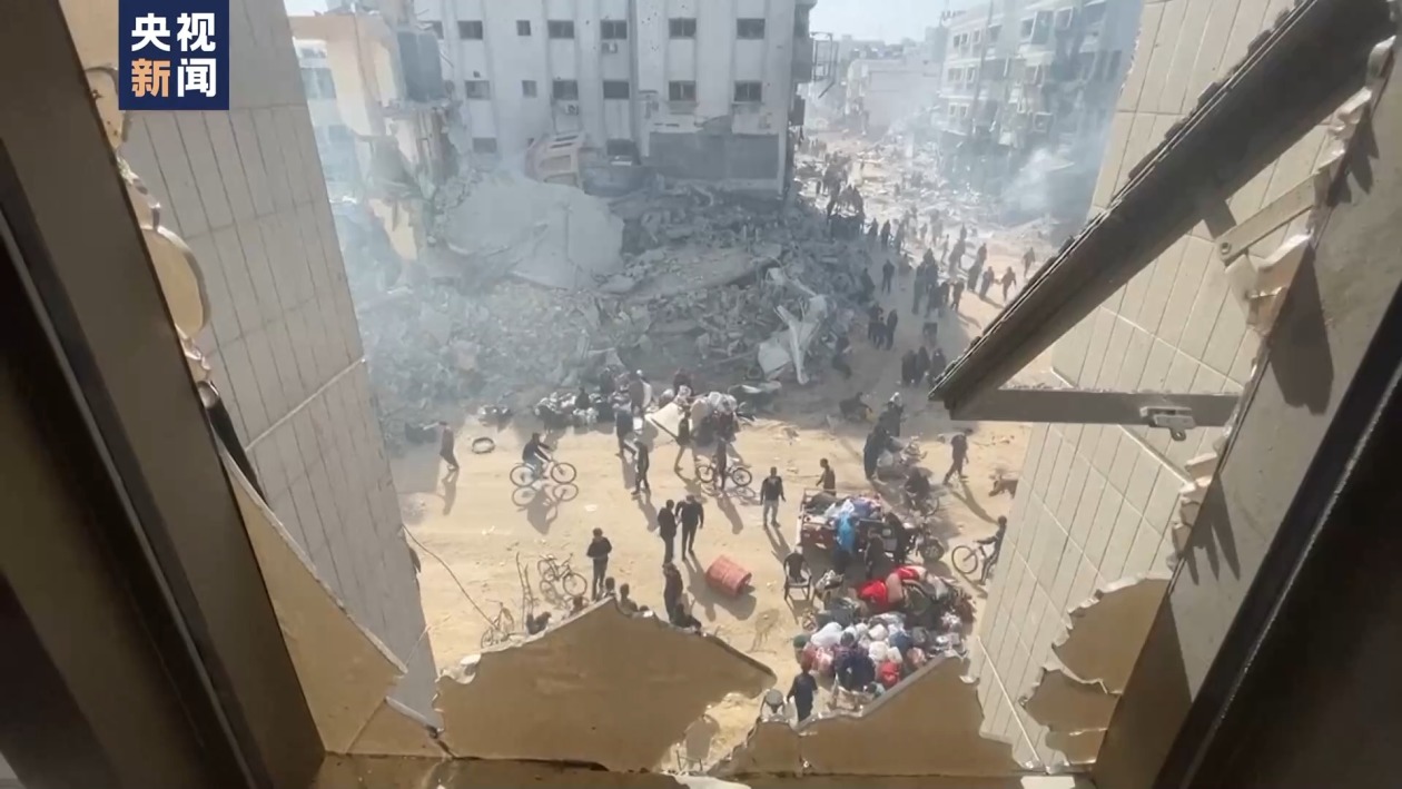 总台报道员 奥萨马·阿什:此刻我们正位于希法医院,眼前的景象和以往已大不相同。整个医院的建筑都遭到了严重破坏,专业团队正试图从废墟中搜寻更多遇难者的遗体。这家医院是加沙地带最大的医院,在过去几天里遭到了持续的袭击,我们可以看到医院遭到破坏,也注意到有许多流离失所者正试图找回他们的财物,或是他们离散的亲属。