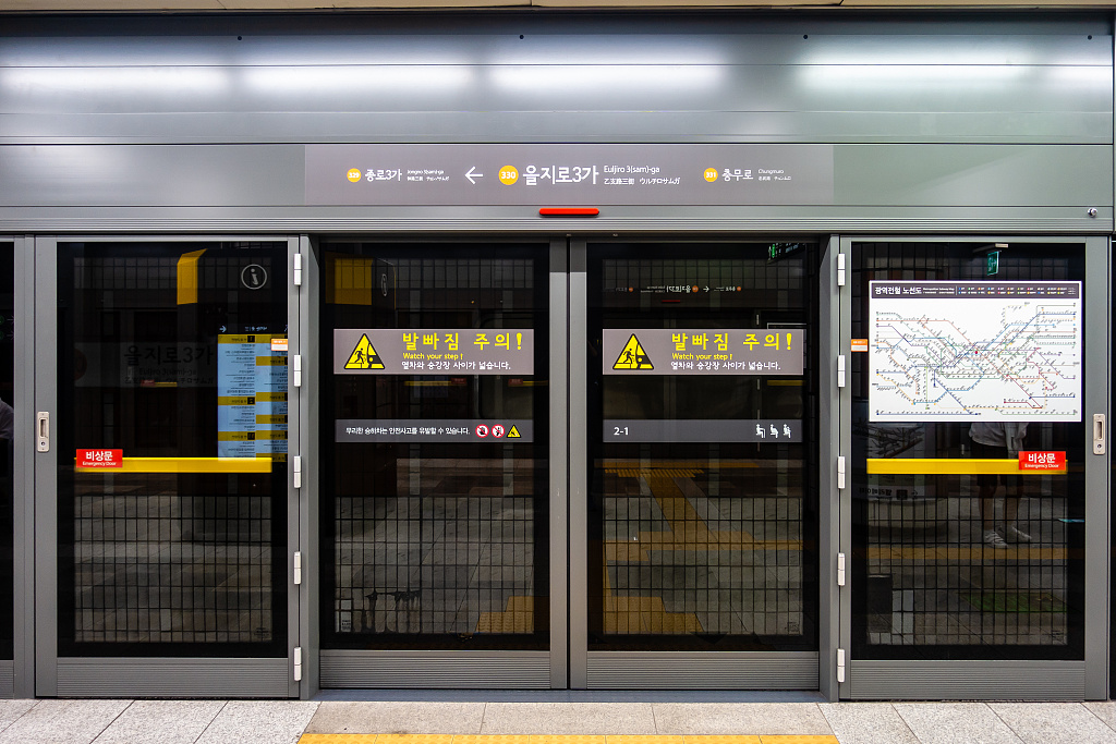 韩国首尔地铁乙支路站内月台 资料图 图源:视觉中国