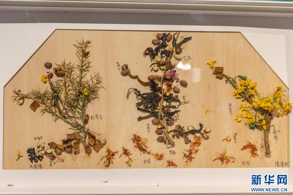 新华社照片,重庆,2024年4月6日 这是4月6日在“百草创艺”中医药艺术作品展现场拍摄的用废弃中药材制作的艺术作品。 新华社记者 黄伟 摄