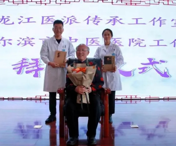 该院两名青年优秀骨干医师行拜师礼,师承龙江医派姜德友教授。