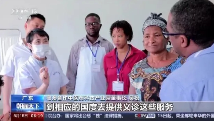 粤澳合作中医药科技产业园董事长 吴松:我们这种“以医带药”,就是我们国内的中医生,到相应的国度去提供义诊这些服务,还一种方式,就是我们给当地的医生提供中医培训,手把手教他们中医的相关知识和技能。