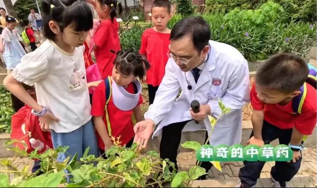 在文化课上,湖南省人民医院中医科副主任医师谭浩用生动有趣的方式向孩子们介绍了中医的基本概念、中华名医、中医的理论体系。体育课上,孩子们学习并参与了马王堆导引术健身操,通过肢体的开合提落、旋转屈伸感受了中医养生智慧。科学课上,孩子们来到种植了多种中草药的本草园内,触摸、观察每一株植物,了解中草药的生长、研制过程及药效。