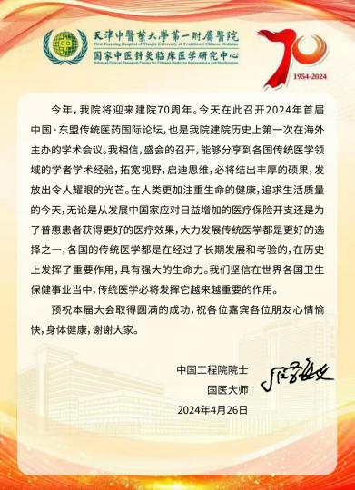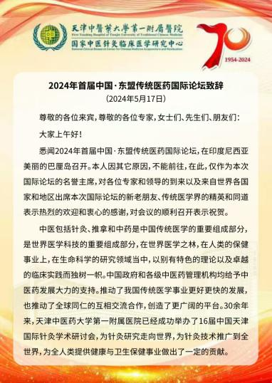 天津市中医药研究院赵强院长在致辞中代表天津市中医药研究院及附属医院,热烈祝贺论坛的举办并向主办方致以感谢。他强调传统医药在保障民众健康方面,具有独特的优势和作用。本次论坛共同探讨和分享传统医学发展的经验、理念、模式和路径,进一步深化合作交流,共享新机遇、共谋新发展,必将有力推动传统医学事业发展迈上新台阶。天津市中医药研究院及附属医院始终坚持发挥传统医学优势和十大研究所职能,围绕优势病种守正创新,开展中医适宜技术的研发和推广。我们期待通过本次论坛,汇聚更大智慧和力量,与各国专家同道广泛开展全方位合作,促进传统医学为增进人类健康福祉发挥更大作用。