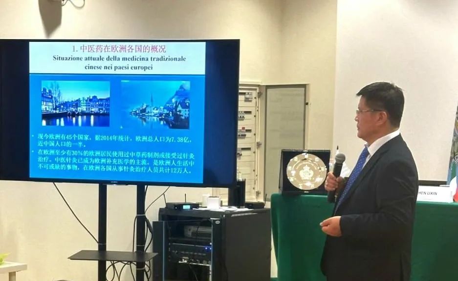 郭春彪会长作了“欧洲各国中医药发展现况”的报告,列举了欧洲中医立法进程、在欧洲国家建立的中医中心以及欧洲中医教育发展现况。郭会长讲述了劳拉院长作为意大利中医药学会医学法律顾问,协助学会开展的工作,并在圣马力诺Benessere医院建立了意大利中医药学会的教学和医疗基地。