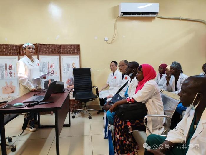 在茶歇时间,主持人及各授课者化身中医药文化传播使者,向学员介绍了葫芦在中医历史文化的作用,介绍了养生茶饮罗汉果菊花饮的功效,宣传了“桂十味”之一的罗汉果,极大促进了中医药文化及药膳文化在海外传播。本次培训班受到Abdou Moumouni大学医学生的热烈追捧,他们纷纷表示通过此次培训提高了中医基础理论知识,熟悉了中医特色治疗及操作,收获颇丰,期待下一次培训班尽快举办。