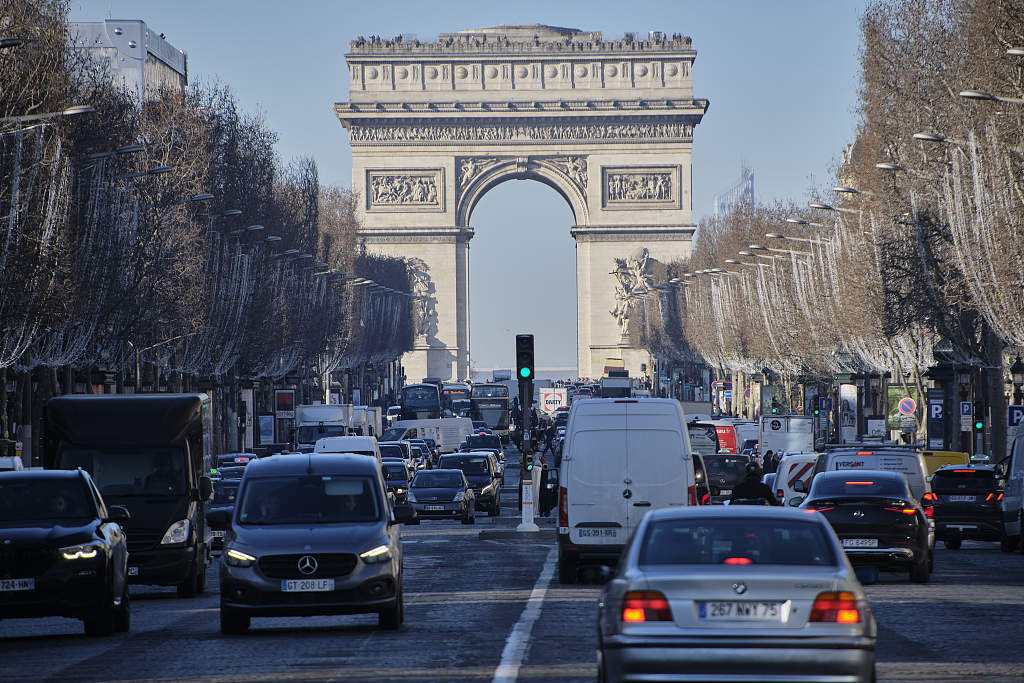 2024年1月19日,法国巴黎,香榭丽舍大道上交通拥挤。(视觉中国)