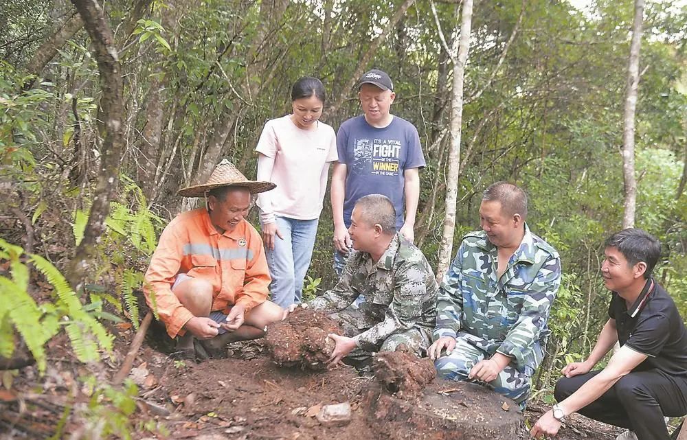 茯苓种植有段木种植和树蔸种植两种方式,种植1次可采3次,是一种广普中药材,市场前景广阔。“今年茯苓段木种植有五六亩,每亩产量8000斤左右,价格目前每斤3元多,还有树蔸种植600多亩,还没开始挖。”该林业农场负责人丁明忠说。