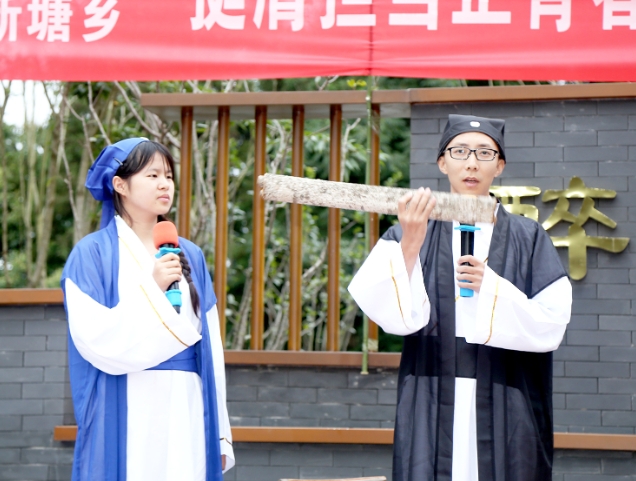 中医药文化传承实践团在恩施新塘乡下坝村开展暑期三下乡文艺汇演。王霄摄