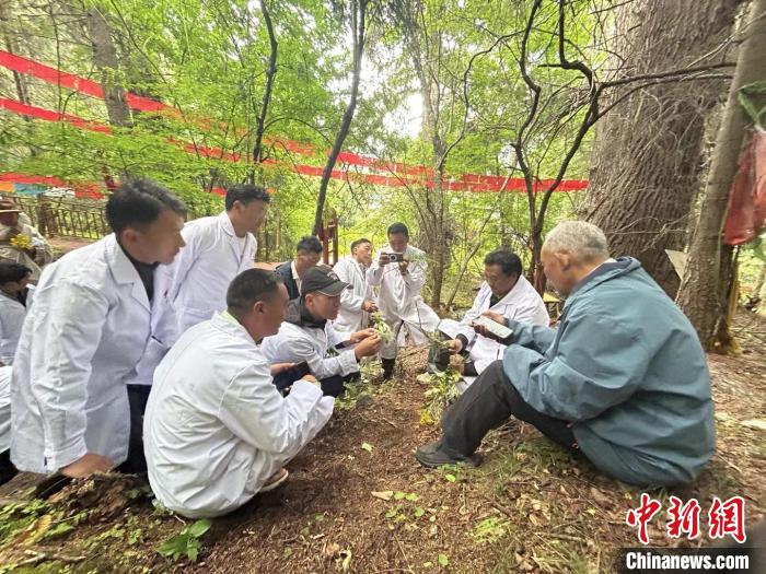 图为学员和老师在野外辨识藏药。索曲 摄