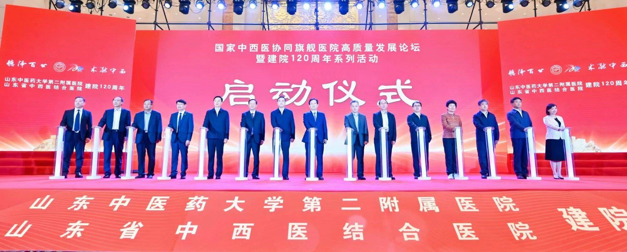 山东中医药大学第二附属医院院长、岐黄学者徐云生向各位与会者的到来表示热烈的欢迎和衷心的感谢!他在讲话中指出,山东中医药大学第二附属医院从1904年旧中国的风雨飘摇中走来,从胶济铁路低沉的汽笛声中走来,既有中医药文化的传统基因,又有西方医学的融会贯通,作为山东省首批济南市“三级甲等医院”,山东中医药大学第二附属医院在“明德仁术济世淳风”的院训引领下,不断拓展“院有专科、科有专病,人有专长、病有专药”的专业发展格局,“中西医结合、特色发展”之路越走越宽,国家重点中西医结合医院和国家中西医结合旗舰医院的品牌效应已然形成。120年的发展离不开人才支撑和学科建设,离不开科研兴院和品牌建设。未来,我们将继续扩大综合服务能力,提升管理效益,加快智慧医院建设,站在新的历史起点上,深刻领会山东省委十二届七次全会精神,按照学校第六次党代会工作部署要求,加快建设两院三区,深入实施四大战略,全面推进十项工程,争取早日把医院建设成为政府放心、社会满意、群众信赖的全国一流中西医结合研究型医院,实现医院高质量跨越式提升和发展。在新征程上书写出更加精彩的改革答卷,为全省人民的身体健康提供更强有力的保障,为山东医疗卫生事业的高质量发展作出更大贡献!