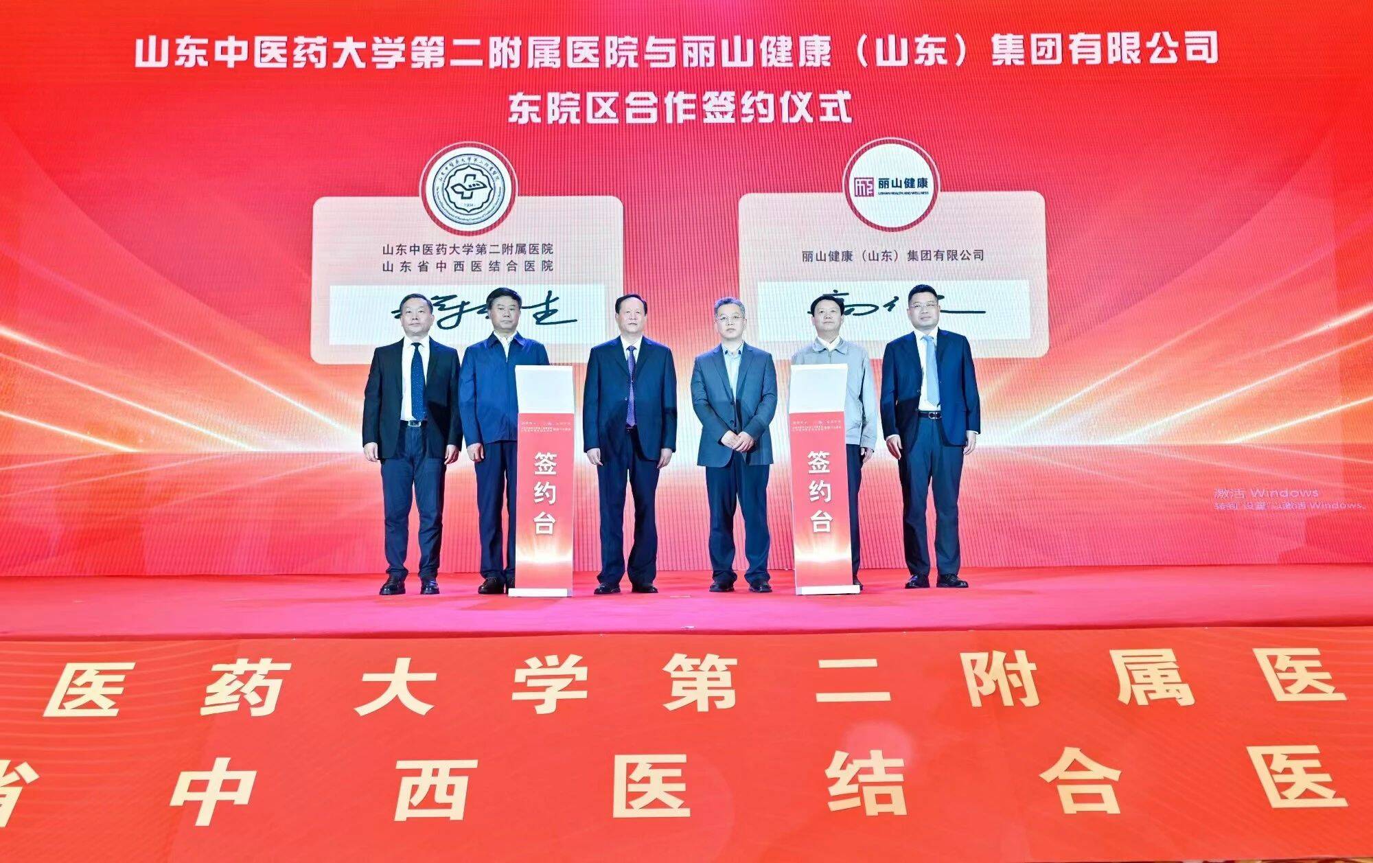 会议举行了与丽山健康集团的签约仪式。在山东省卫生健康委员会党组成员、副主任、省中医药管理局副局长李明,山东中医药大学党委书记张立祥,济南市卫生健康委党组成员、副主任耿杰,历下区人大常委会副主任杜宝现四位领导的共同见证下,徐云生和丽山健康(山东)集团有限公司董事长高俊两位领导上台签约,共同开启了医院与东院区建设的新篇章。会议举行了山东中医药大学中西医结合创新研究院、国医大师王新陆教授传承工作室、全国名中医高树中教授传承工作室、岐黄学者王振国教授传承工作室的揭牌仪式。