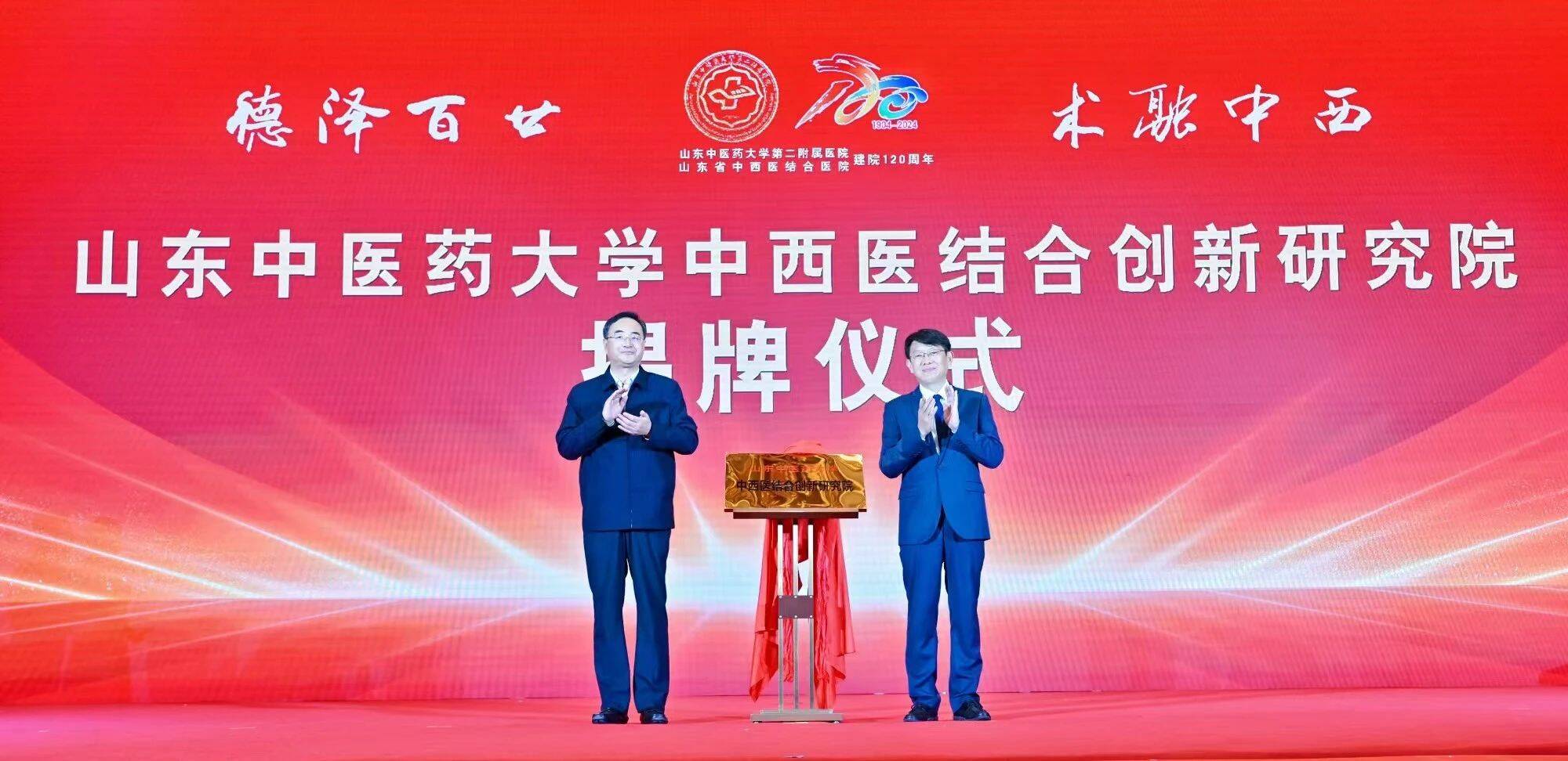 山东省人力资源和社会保障厅党组成员、副厅长潘文勇,山东中医药大学校长李可建为山东中医药大学中西医结合创新研究院揭牌