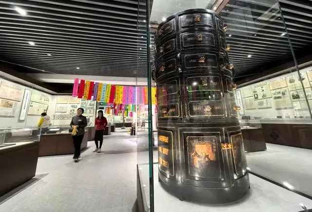 凑近看,观众还能看到每个药斗表面的标签上写有药名,柜门用金漆彩绘着神农、扁鹊、华佗、李时珍等人物图。博物馆还在展柜顶部巧妙地设计了一面镜子,照出圆药柜顶部的红色字迹——“岁次乾隆廿八年麦熟斯仁褟,造好自珍传”及“斥银百余历三载有七成圆走十二草馐橱”。甄雪燕解读,由此可见,圆药柜制造耗时3年零7个月,于1763年完工。