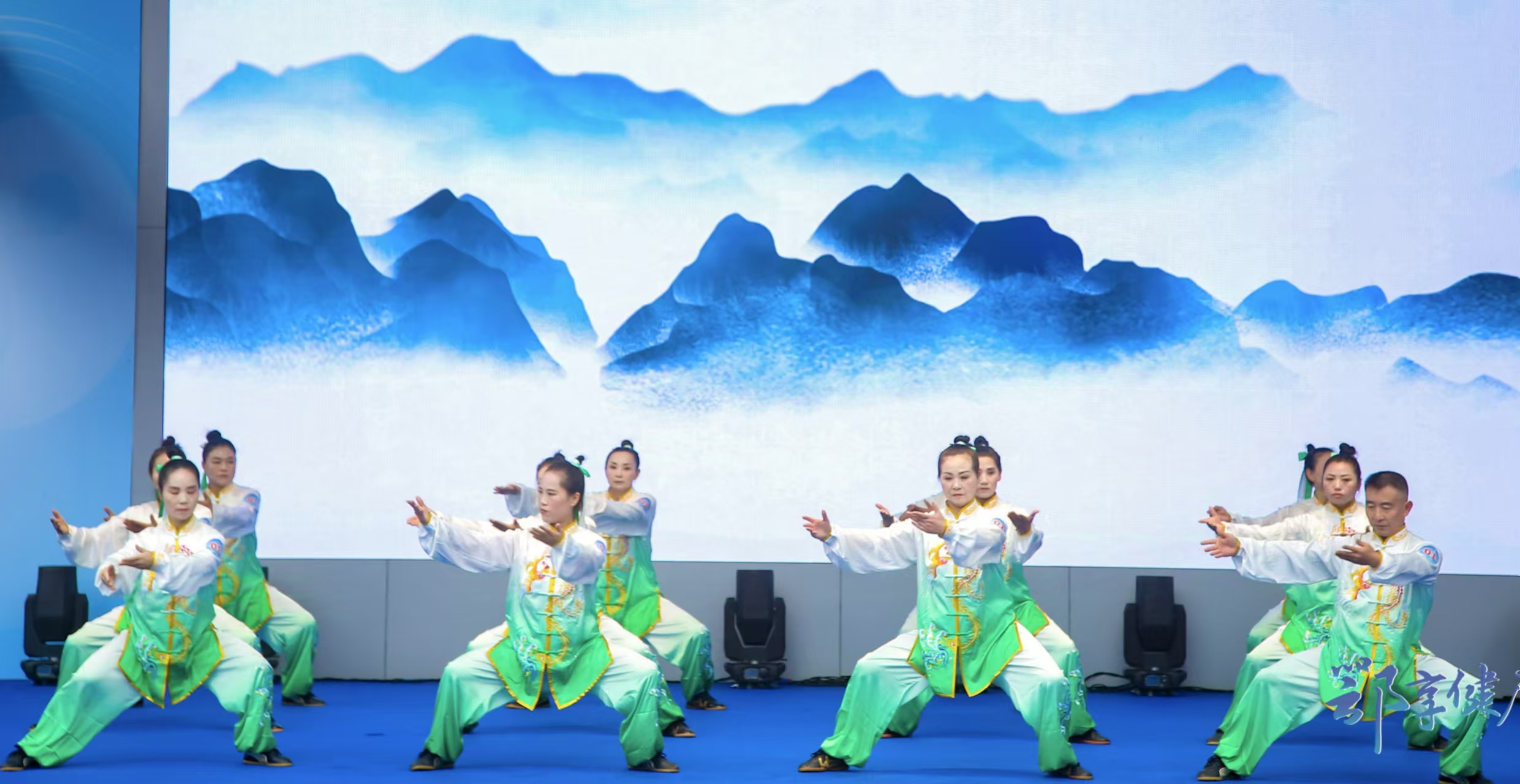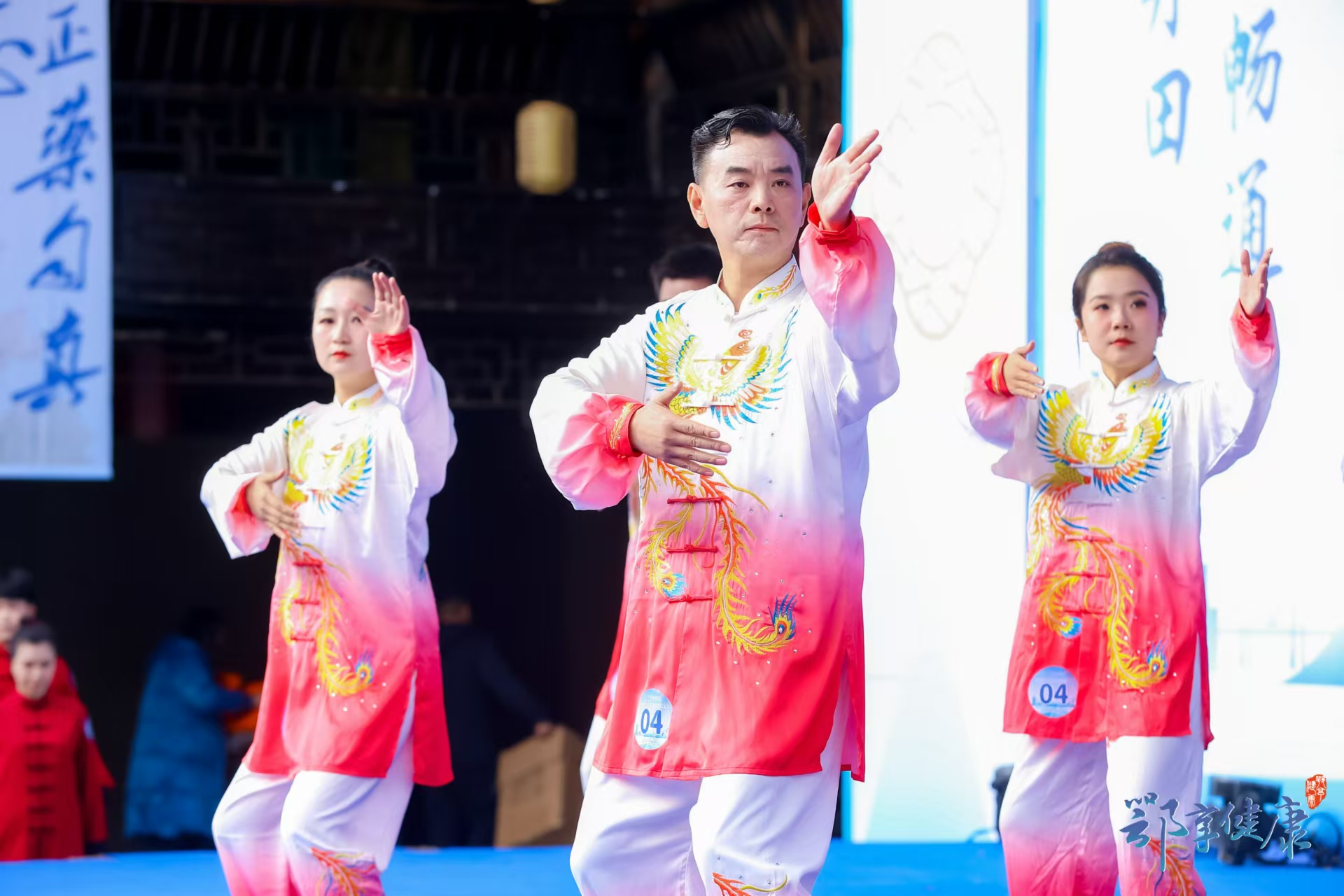 比赛现场,武汉市中医医院的选手们身着传统服饰,凝神静气,伴随着柔和悠然的乐曲,舒缓抬臂,伸展身体,一招一式间尽展阴阳互化的刚柔之美。单鞭、云手、进步、转身,来自荆州市代表队的选手们将武术与太极完美融合,以张弛有度、潇洒飘逸的动作表演点燃了全场观众的热情,一曲终了更是赢得阵阵掌声。