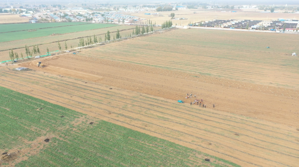 鄂托克前旗敖勒召其镇三段地社区2150亩板蓝根进入了收获采挖期。(闫伟 摄)