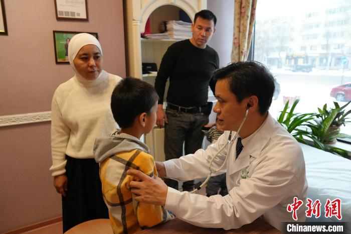 在儿童诊室内,一位母亲带着孩子来检查。母亲阿伊古尔说,“我也是名医生,在医疗机构工作,一直比较关注中医,得知这次有中医专家坐诊,我提前好几天预约了名额”。