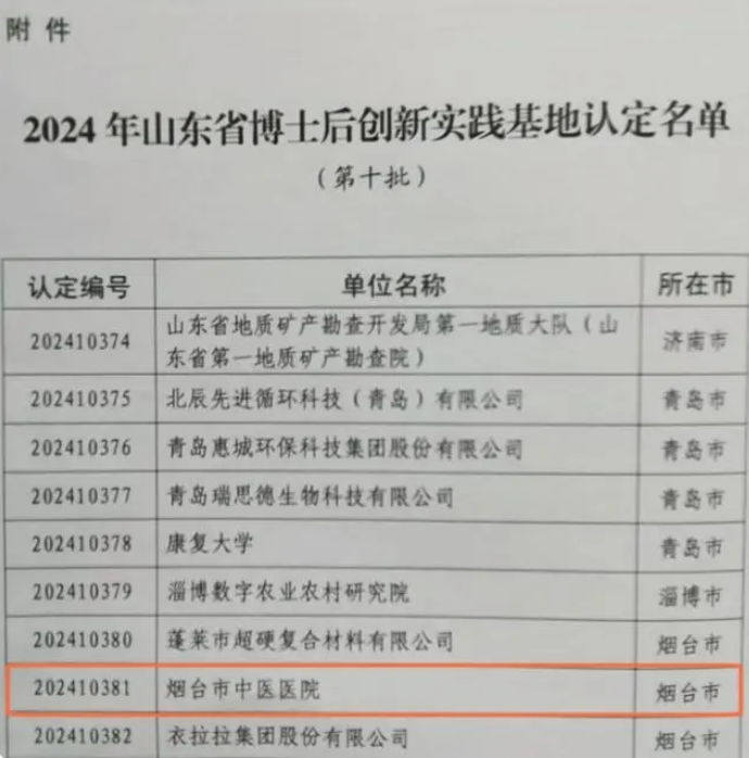 山东省博士后创新实践基地是由山东省人社厅批准设立的省级博士后工作平台,依托博士后科研流动站联合招收博士后研究人员,开展科技创新研究,是烟台市中医医院打造高水平科研平台,激发人才创新活力,提升科技创新能力的重要战略举措。