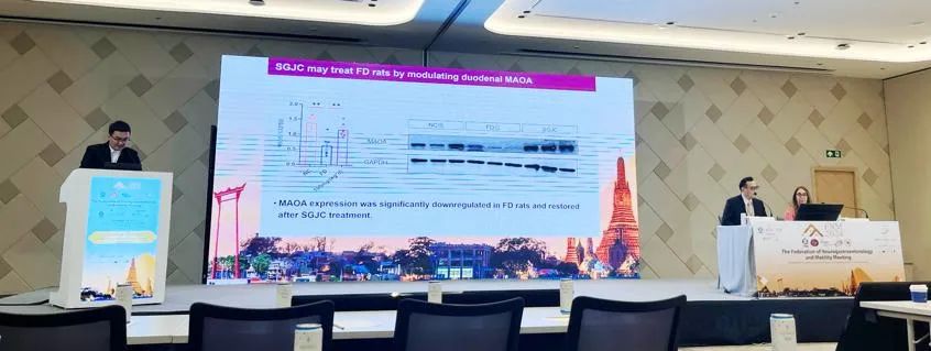来自中山大学附属第一医院的肖英莲教授团队携其“舒肝解郁胶囊治疗功能性消化不良的潜在靶点:网络药理学分析和体内验证研究”的最新成果参加大会,与国际同行分享中医药在治疗肠脑互动异常方面的疗效与成果,让中国传统医学登上国际舞台。