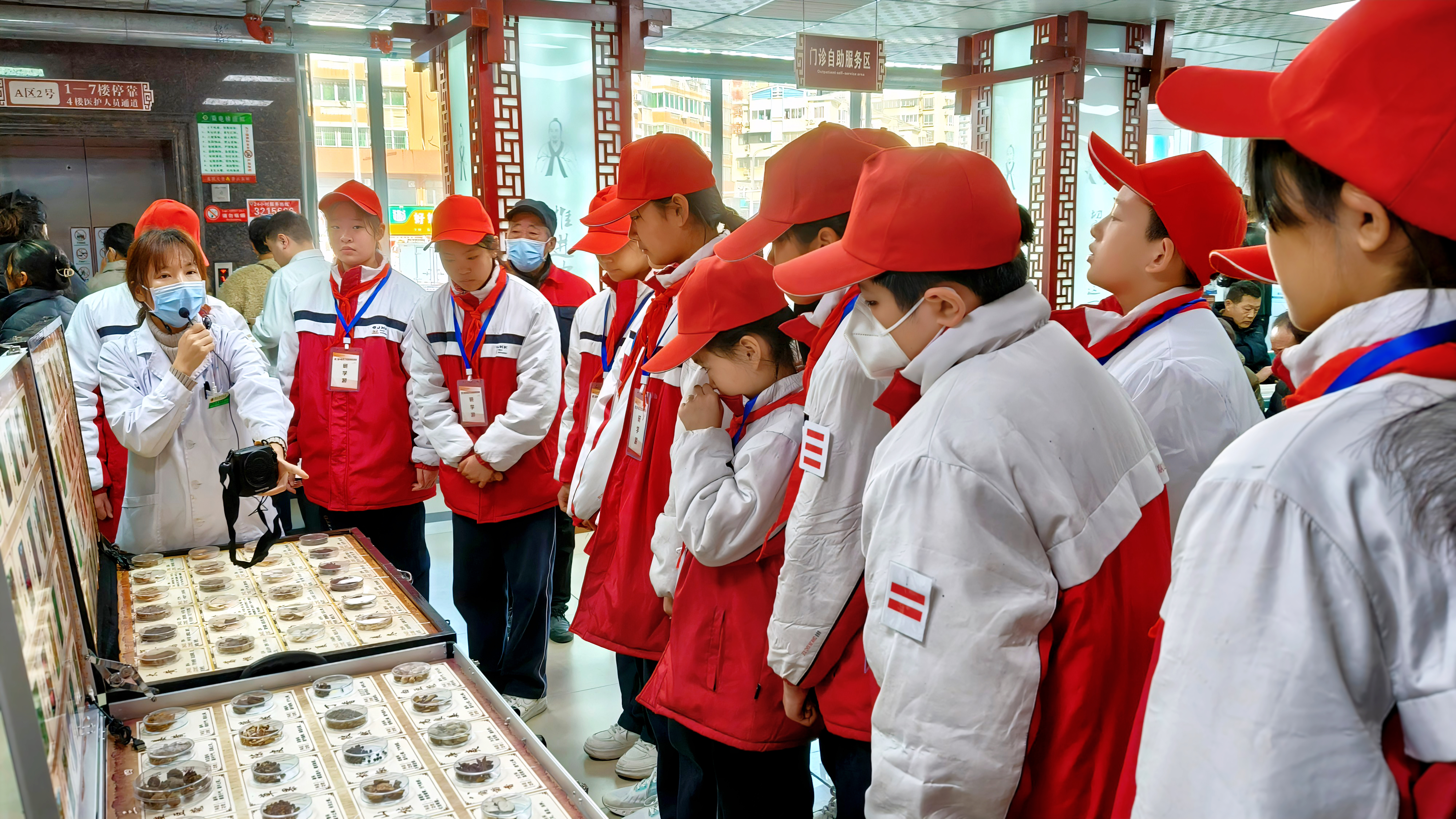 活动伊始,学生们首先参观了医院大厅内十大名医的塑像,深入探究了扁鹊、华佗、岐伯、孙思邈等古代医学大家的医学思想、治疗原则及预防保健知识,对医者的职业操守与敬意有了更加深刻的理解。步入中药房,学生们好奇地开启一扇扇中药柜,细致观察并辨识各种中药饮片的色泽、质地、香气与形态,对中药的原植物及其饮片之间的区别有了更为直观的认识。在中草药标本和中药制剂展示区,药剂师生动地传授了中医药知识及其深厚的文化内涵,孩子们的理解在此过程中得到了升华。