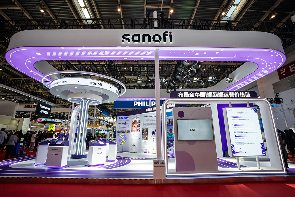 2024年11月27日,第二届中国国际供应链促进博览会上,赛诺菲(Sanofi)展台。(视觉中国)