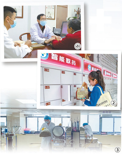 图③:作为紧密型县域医共体的龙头中医院,福建安溪县中医院为医共体内乡镇卫生院提供中药代煎服务。图为该院中药代煎中心,工作人员正在煎药。
