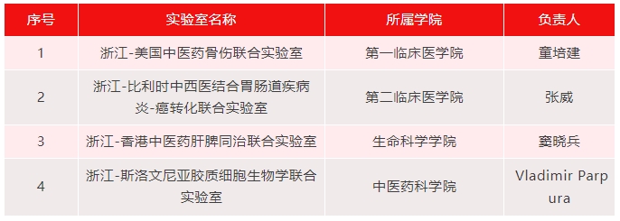 近日,浙江省科学技术厅公布了2024年度省级国际科技合作载体认定名单,我校“浙江-美国中医药骨伤联合实验室”“浙江-比利时中西医结合胃肠道疾病炎-癌转化联合实验室”“浙江-香港中医药肝脾同治联合实验室”以及“浙江-斯洛文尼亚胶质细胞生物学联合实验室”4个联合实验室获批认定。