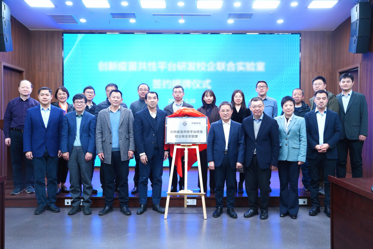 12月18日,智睿生物医药产业园入驻企业重庆华智生物与复旦大学上海市重大传染病和生物安全研究院共建的“创新疫苗共性平台研发校企联合实验室” (以下简称“联合实验室”)举行签约揭牌仪式。上海市卫健委副主任胡鸿毅,上海市科委生物医药处四级调研员金樑,复旦大学校长助理、科学技术研究院院长彭慧胜院士,智飞生物董事长蒋仁生,华智生物总经理刘庆伟等出席仪式。