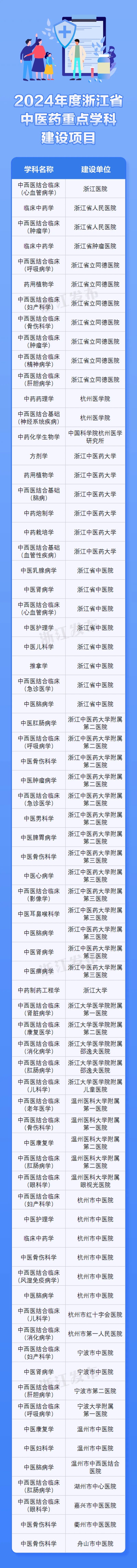 72个!2024年度浙江省中医药重点学科建设项目名单公布