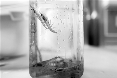 中国南极考察队获取的磷虾样品。 新华社记者 刘诗平摄