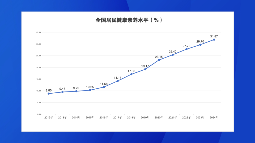 监测结果显示,2024年全国城市居民健康素养水平为34.74%,农村居民为29.11%,较2023年分别增长1.49个和2.88个百分点,城乡差距进一步缩小。东、中、西部地区居民健康素养水平分别为34.98%、31.48%和27.27%,较2023年分别增长1.68、2.63和2.83个百分点,东部地区和中、西部地区之间的差距缩小。城乡居民基本知识和理念素养水平为44.46%,健康生活方式与行为素养水平为34.45%,基本技能素养水平为28.67%,较2023年分别提升2.46、2.24、1.91个百分点。6类健康问题素养水平由高到低依次为:安全与急救素养61.29%、科学健康观素养56.27%、健康信息素养44.03%、慢性病防治素养32.77%、基本医疗素养30.16%和传染病防治素养29.26%。本次监测覆盖31个省(自治区、直辖市)的336个县(区)1008个乡镇(街道),对象为15-69岁常住人口,共得到有效调查问卷71828份。