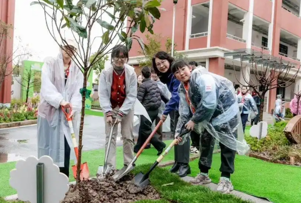 在仪式环节,与会教师代表为“小小中医师”代表授予药苗,象征着中医药文化的持续传承。相关领导分别为附属浦东鹤沙学校的道路与楼宇命名揭幕,并共同启动了“‘植’此杏林·躬耕育人”植树节实践活动暨百草园开园仪式,标志着校园文化建设的进一步深化。
