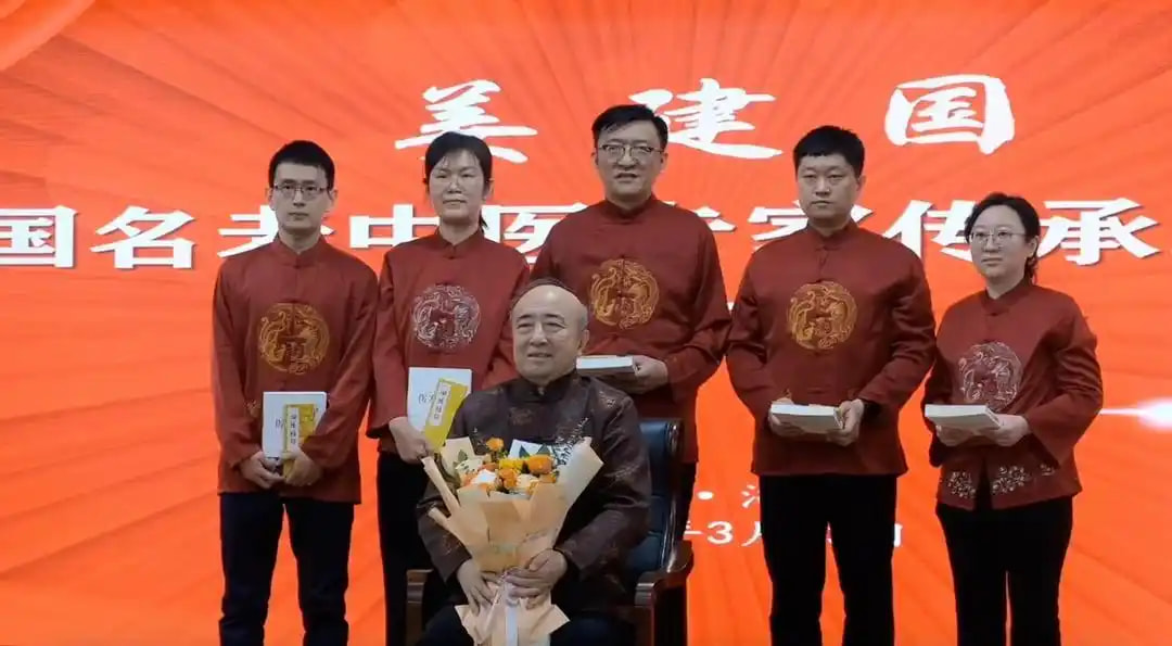 收徒拜师仪式中,淄博市中医医院脑病三科副主任医师郭睿、心血管科副主任医师邱旭等5名青年医师依古礼行三拜之仪,敬茶递帖。姜建国教授依礼回师训,教导弟子“任、慈、精、诚”,众弟子承诺恪守师训,传承岐黄薪火。