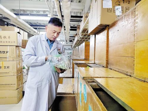 3月11日,在石家庄市中医院中药房,李昌查验中药饮片。本报记者 马彦铭摄