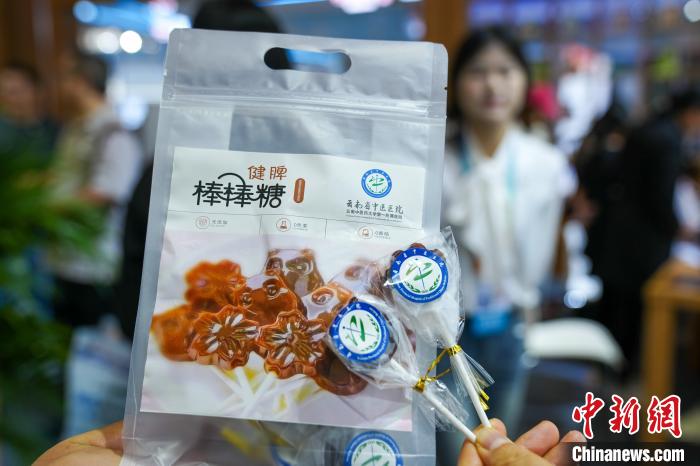 6月21日,现场展出的中药棒棒糖。中新社记者 刘冉阳 摄