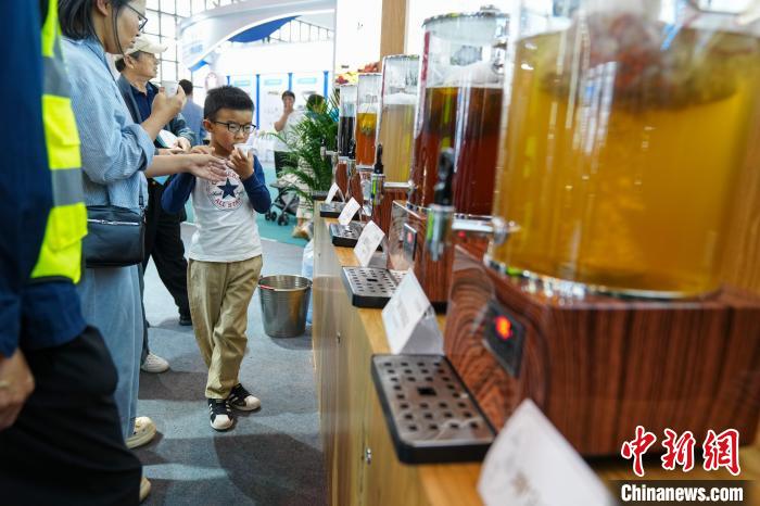 6月21日,观众品尝中药茶饮。中新社记者 刘冉阳 摄