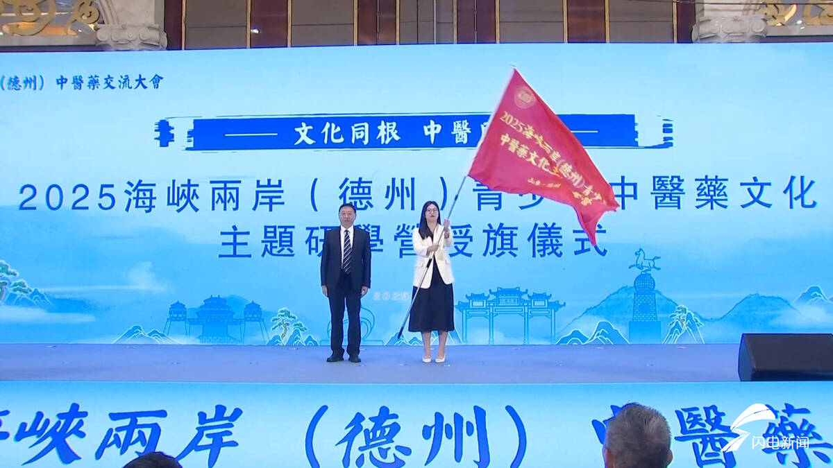 开幕式上举行了2025海峡两岸(德州)青少年研学营授旗仪式,现场还先后举行了启动仪式和中医药合作项目揭牌仪式。