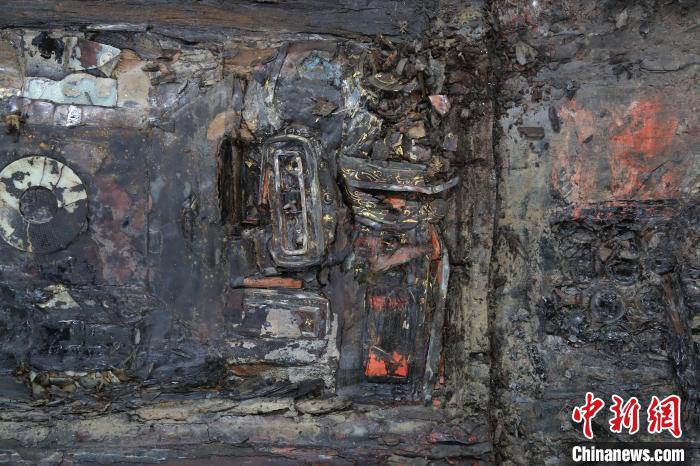图为海昏侯墓内棺头箱遗物出土情形。(江西省文物考古研究院供图)