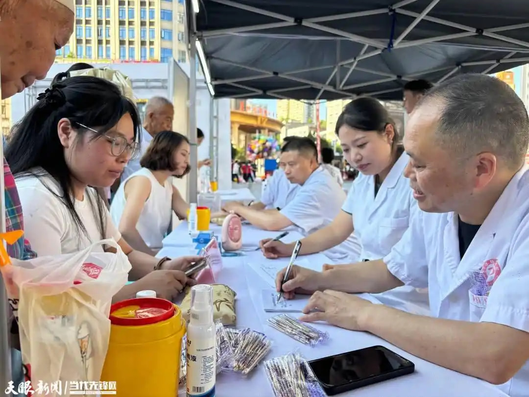 “八段锦的动作要像行云流水,注意气沉丹田……”中医养生操教学现场,老人们跟着教练舒展筋骨,吸引了不少年轻人也加入其中。惠民服务区的义诊台前排起了长龙,4名老中医和2名“杏林之星”被市民团团围住,他们一边搭脉问诊一边耐心解答。