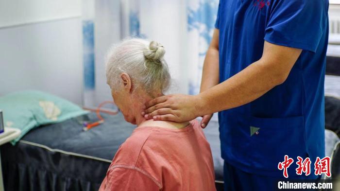 瓦伦蒂娜·尼古拉耶夫娜·伊万诺娃正在体验中医按摩 颜歆窈 摄