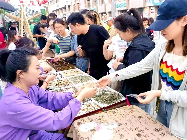 开幕式上,市卫生健康委领导为“中医药文化惠民服务队”授旗,古色古香的诊桌前随即亮起暖黄灯光。等候的市民如潮水般涌入:孩童拽着家长奔向香囊展区,老人在义诊区前排起长队,年轻人举着手机记录中药文创产品,构成“政民共襄中医药发展”的生动图景。