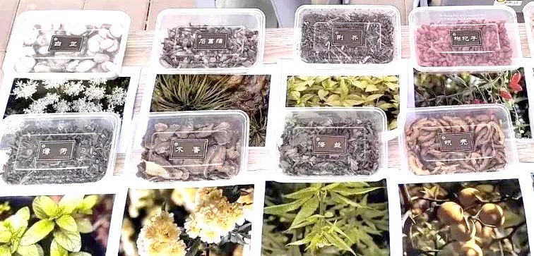 工作人员现场教市民辨别药材。