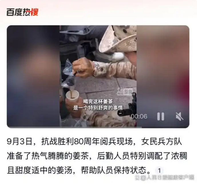 广州中医药大学第一附属医院内分泌科主任刘树林接受人民日报健康客户端记者采访时解释,这看似“反常识”的安排背后,恰是传统中医因时制宜的养生智慧。小小一杯姜茶,不仅是为了驱寒,更是为了在户外高温、高强度训练环境下,起到益气生津、温胃散寒、防止外感的作用。