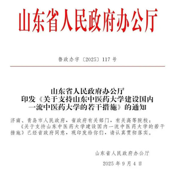 《若干措施》明确,推动山东中医药大学办学水平和综合能力提升,中医学等学科进入学科评估A类学科或国家“双一流”建设学科行列,在人才培养、学科建设、办学条件等方面为学校国内一流中医药大学建设提供大力支持和全方位保障。