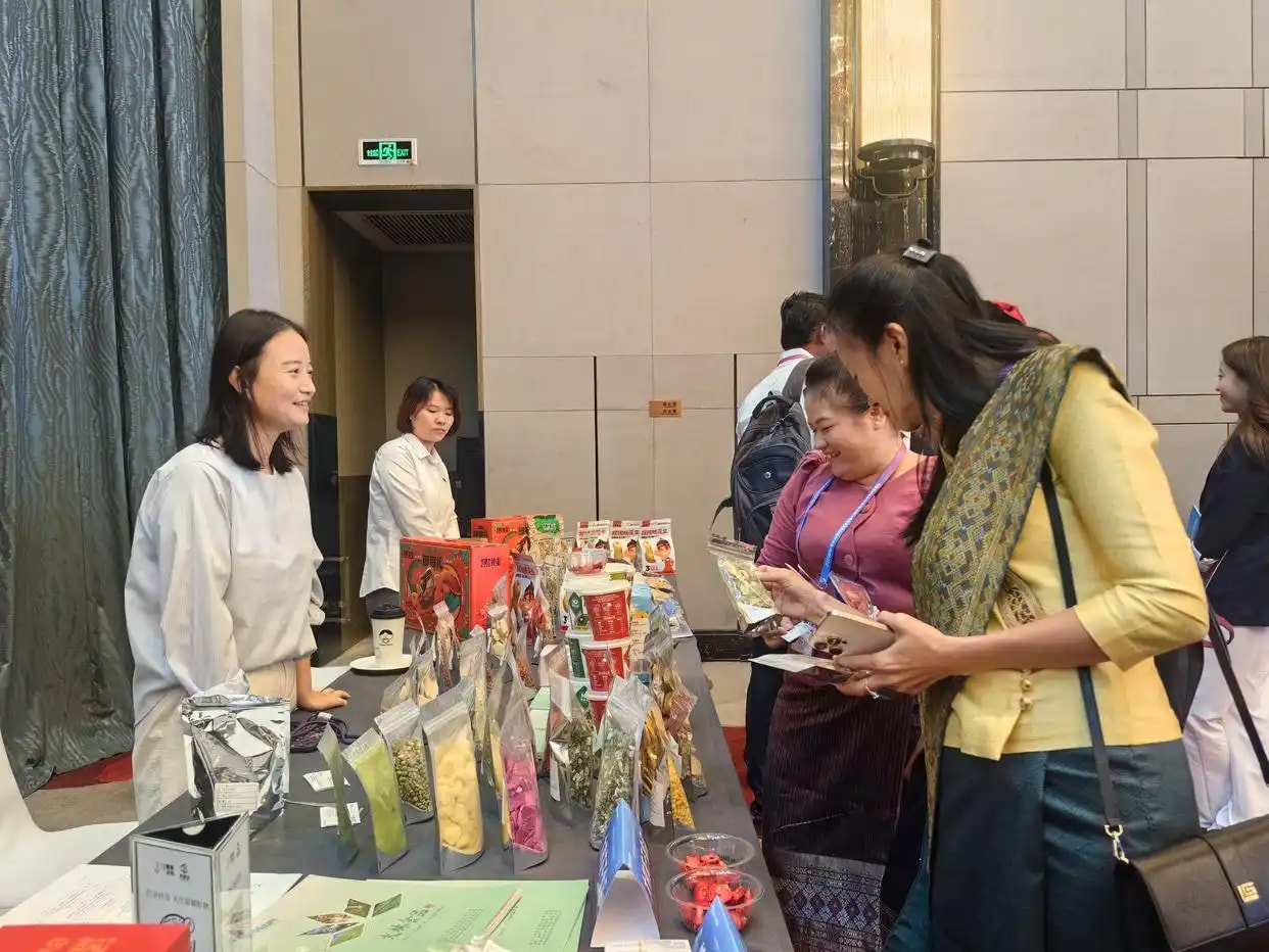 9月8日,与会嘉宾在第三届中国(亳州)—RCEP中医药行业合作会议现场了解中医药产品。新华社记者 汪海月 摄