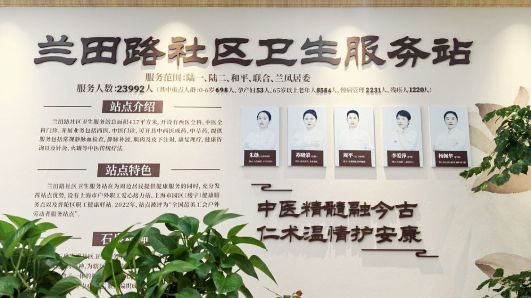 兰田路社区卫生服务站位于中山北路2605弄4号一楼,为辖区居民提供全科诊疗、中医诊疗、康复、家庭医生签约等医疗服务。站点升级改造后,整体装饰装修融入中医药元素,体现中华传统文化风格,展示中医文化传统特色。