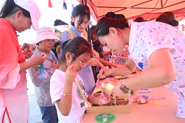 医疗服务体验区同样人气高涨,全州各级中医优势专科、重点专科专家现场坐诊,为市民提供专业义诊服务,耐心解答健康疑问,并给出个性化诊疗建议。中(朝)医药适宜技术体验区里,拔罐、艾灸、穴位贴敷等传统中医疗法备受关注。市民亲身体验感受中医药的神奇疗效,纷纷感叹中医药的独特魅力和实用价值。生活健康调理展示区更是人气爆棚,中医药香囊、药枕、挂件、药膳、代茶饮等特色产品琳琅满目,让人目不暇接。这些产品巧妙地将中医药融入日常生活,为市民提供了多样化的健康调理选择。此外,中成药、保健品、延边道地特产、中医药文旅产品等展示区,全面呈现中医药产业融合发展成果,推动中医药与各领域的交流合作,为中医药产业的创新发展注入新动力。