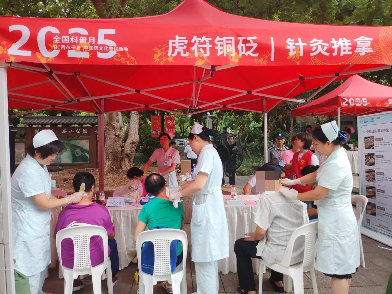 此次惠民活动中精心设置了科普宣教区,将权威中医药知识与实用健康理念送到市民身边。我院各科室结合专业特长,精心编制了13种中医药健康知识宣传手册,涵盖慢性病防治、中医养生保健等贴近市民生活的内容。现场医护志愿者和党员,一边向市民免费发放手册,一边用通俗易懂的语言讲解和接受咨询。科普展板也紧密结合新修订的科普法进行宣传,解读科普工作对全民健康的意义。同时,正值中医药法实施八周年之际,通过展板展示了中医药在疾病防治中的显著成效与法律保障。