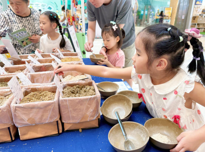 在儿童国学体验区,通过趣味性的中药材辨识、艾条DIY制作、中医小知识科普等互动环节,孩子们在玩乐中触摸传统文化,感知中医智慧。现场可见身着传统服饰的孩子们专注学习,家长则用镜头记录温馨瞬间,氛围其乐融融。